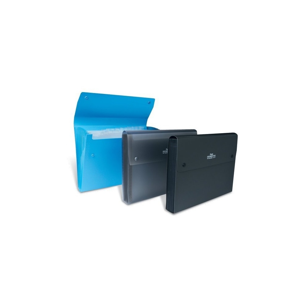 DCD14 TECZKA HARMONIJKOWA__Document File Organiser_- Trwała, wodoodporna__- Posiada wydrukowany indeks ułatwiający organizację dokumentów__- Idealna do przechowywania dokumentów posegregowanych według dat, miesięcy, produktów itd. _DCD14 występuje w 5 kolorach: czarny, niebieski, transparentny czarny, transparentny niebieski, transparentny__Format papieru: A4__Wymiary (mm): 3240x330x35__Ilość kieszeni: 13__Opakowanie: 6szt.__Opakowanie zbiorcze: 24szt.