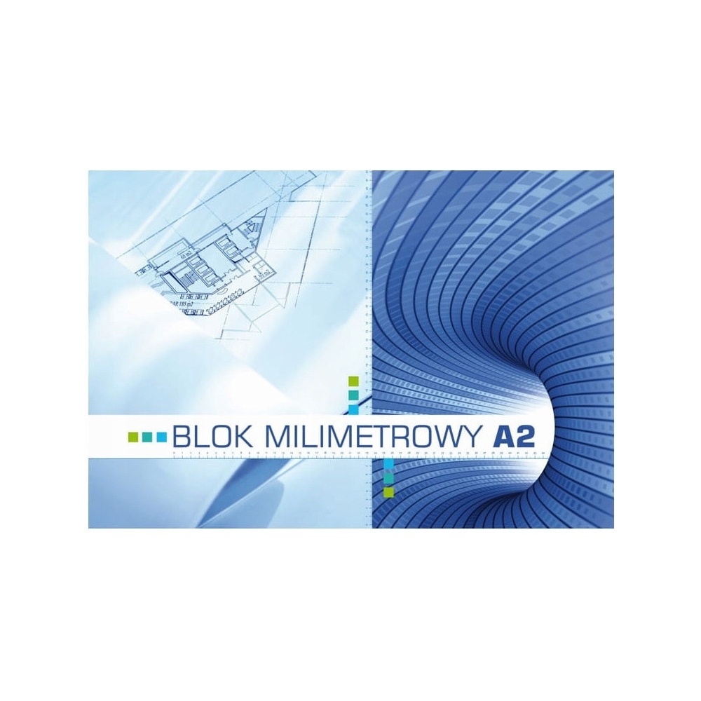 Blok milimetrowy A2 sklada sie z 20 kartek papieru milimetrowego w kolorze jasnobrązowym. Format 594x420 mm.