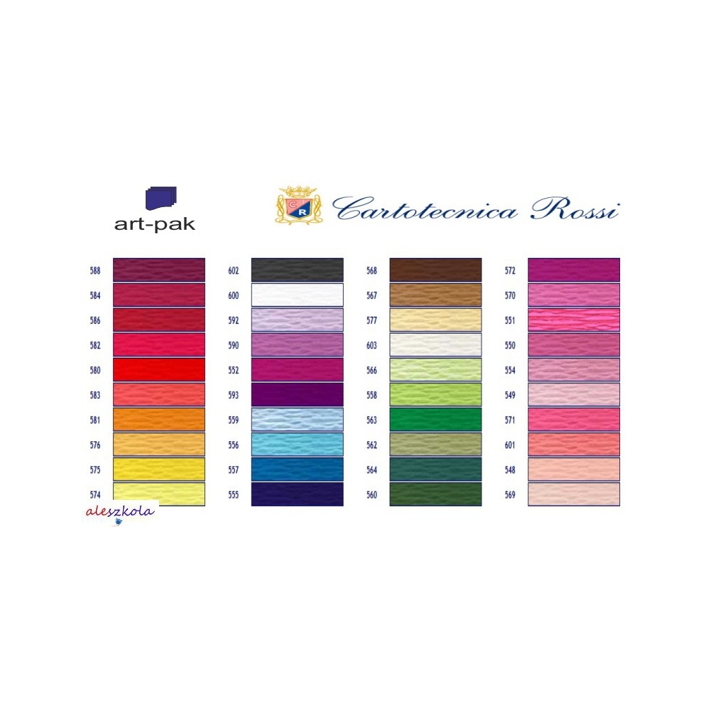 Bibuła dekoracyjna karbowana 50 x 250cm. Gramatura papieru 180g/m_ ._Stopień marszczenia 200%. Opakowanie jednostkowe, worek foliowy zawiera _5 rolek zawiniętych oddzielnie w przezroczystą folię._Artykuł produkcji włoskiej.