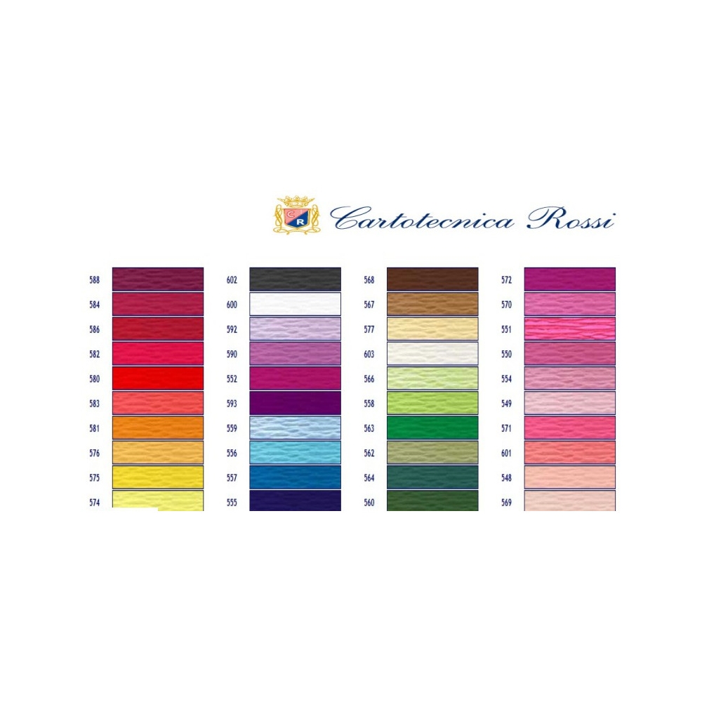 Bibuła dekoracyjna karbowana 50 x 250cm. Gramatura papieru 180g/m_ ._Stopień marszczenia 200%. Opakowanie jednostkowe, worek foliowy zawiera _5 rolek zawiniętych oddzielnie w przezroczystą folię._Artykuł produkcji włoskiej.