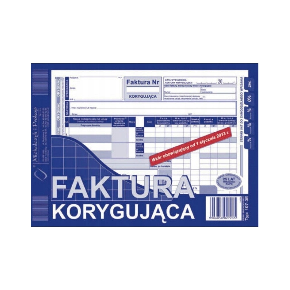 107-3E Faktura VAT korygująca A5 80k Michalczyk i Prokop