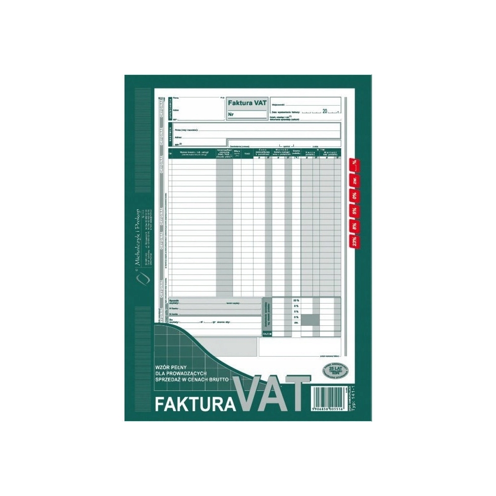 Faktura VAT wzór pelny dla prowadzących sprzedaz w cenach brutto.
