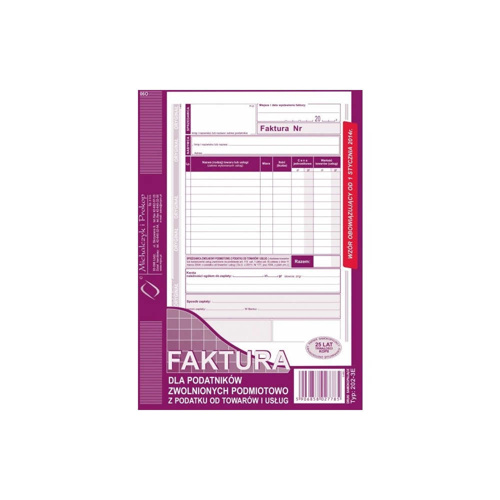 202-3E FAKTURA DLA PODATNIKÓW ZWOLNIONYCH PODMIOTOWO Z PODATKU OD TOWARÓW I USŁUG
