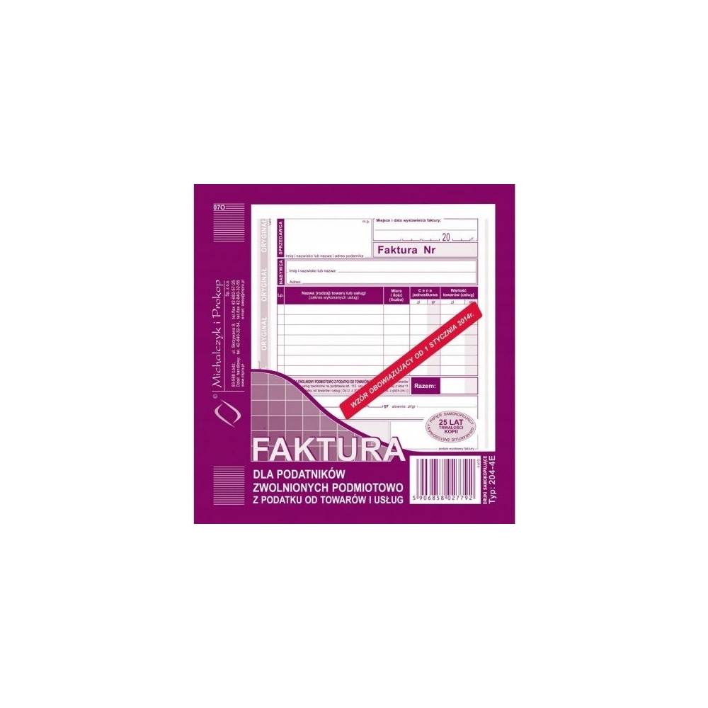 204-4E Faktura dla zw.podm.z pod.2/3 A5 Michalczyk i Prokop