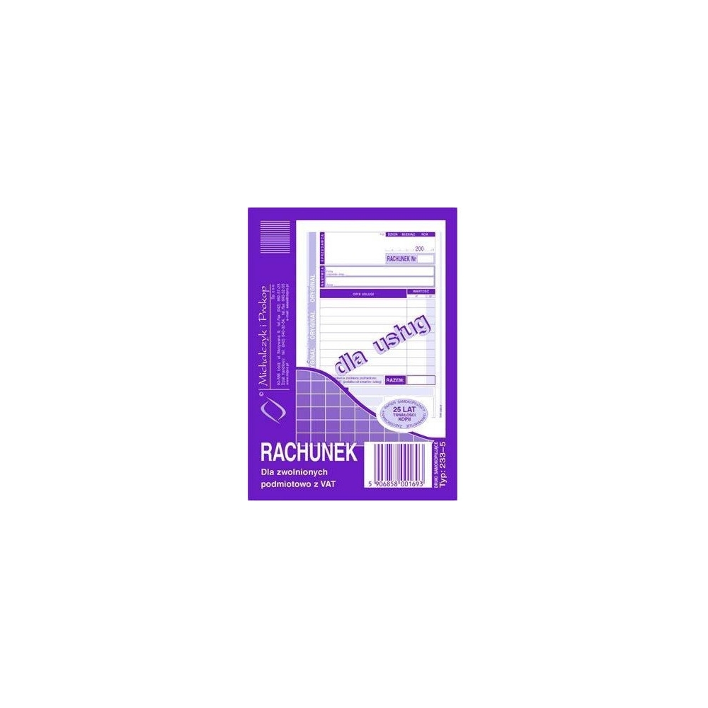233-5 Rachunek A6 dla zwolnionych podmiotowo z VAT(usluga) Michalczyk i Prokop