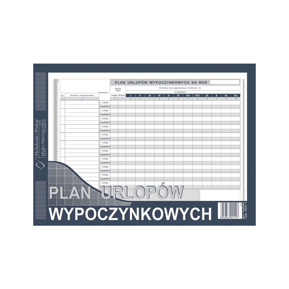 525-1 Plan urlopów wypoczynkowych Michalczyk i Prokop Kod produktu: 0067190 Kod EAN: 5906858001426 Pobierz stronę w PDF Warianty Opis produktu Warianty Opis produktu Plan urlopów wypoczynkowych