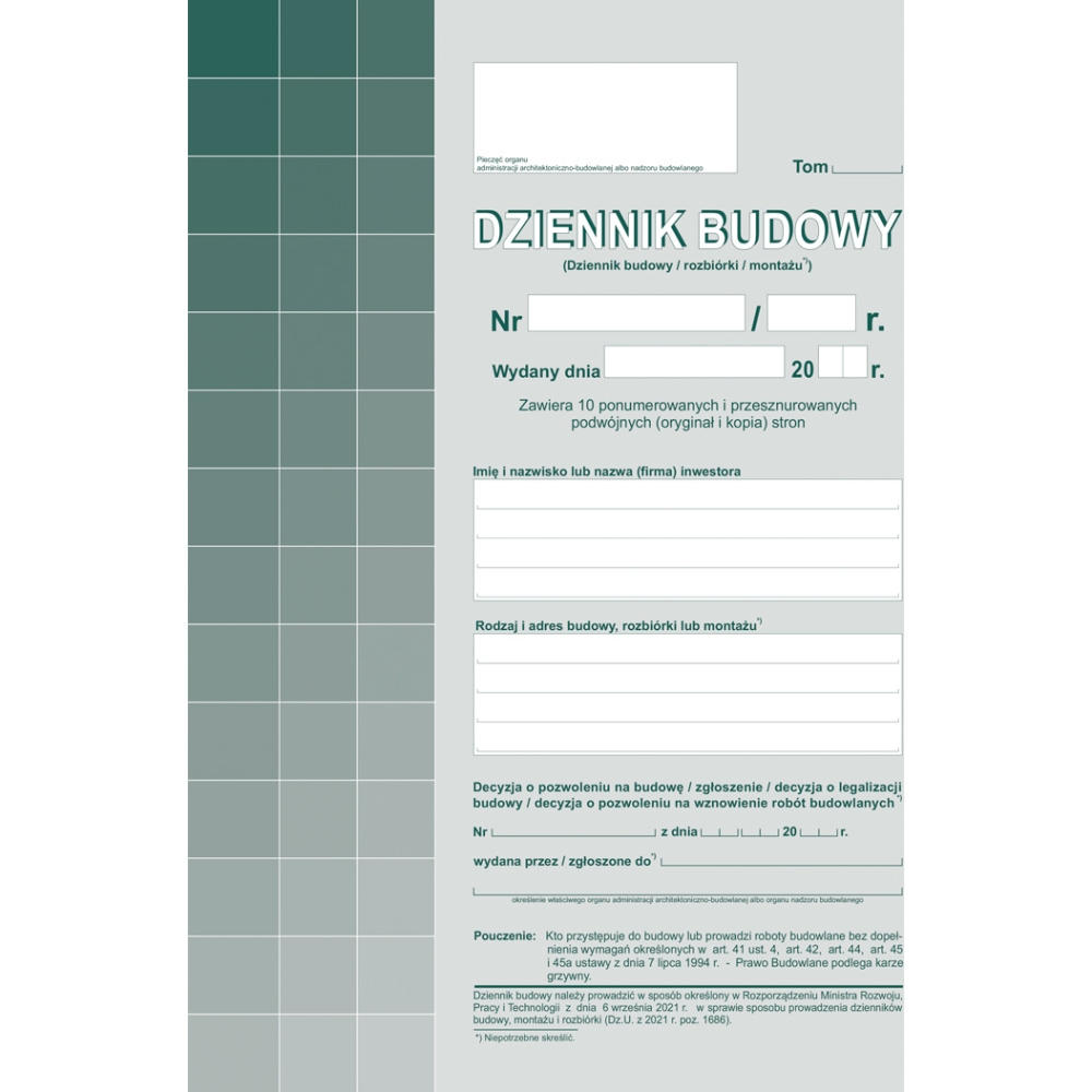 603-S1 Dziennik budowy (10kpl.) A4 oryginał + kopia Michalczyk i Prokop
