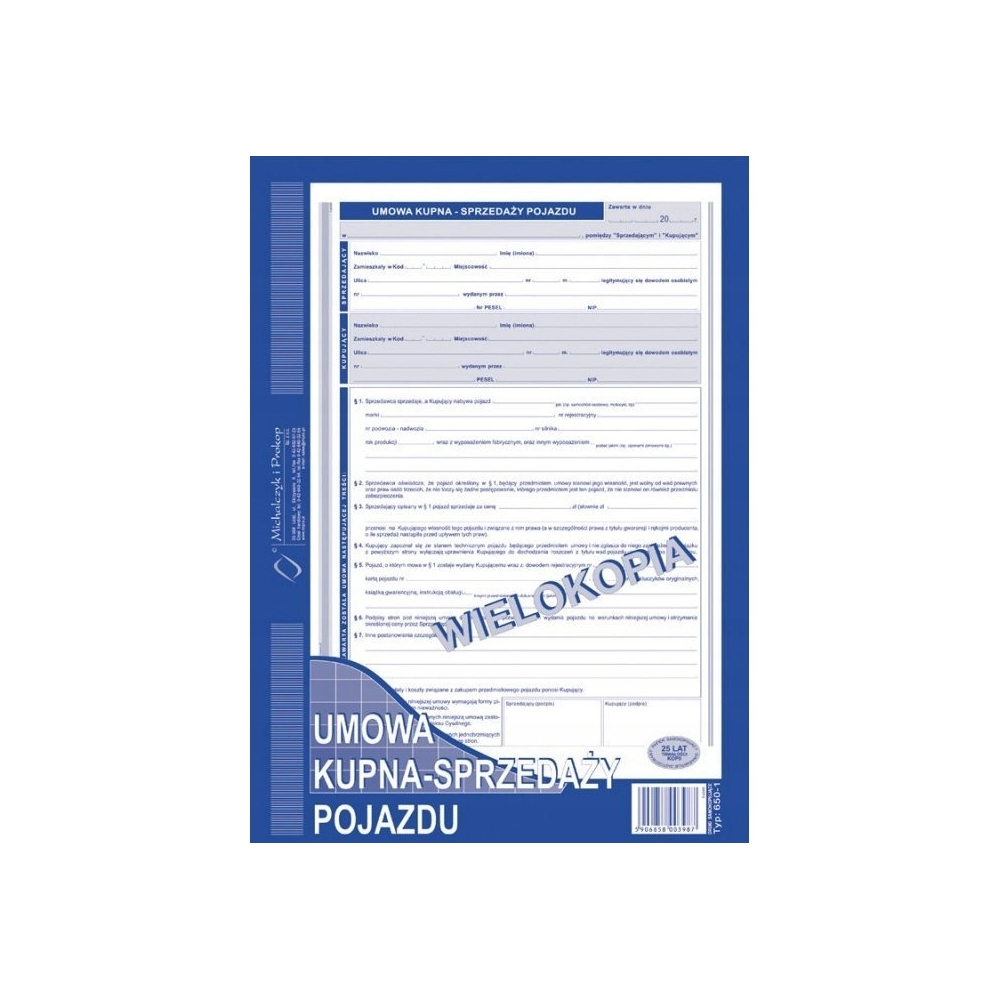 650-1 Umowa kupna - sprzedaży pojazdu MICHALCZYK&PROKOP A4 40 kartek