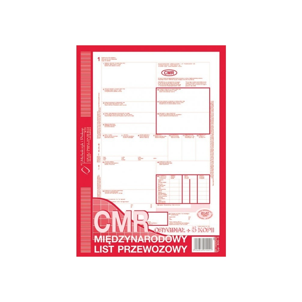 800-3 CMR A4 78kartek 1+5 międzynarodowy list przewozowy MICHALCZYK Kod produktu: 0066925 Kod EAN: 5906858010022 Pobierz stronę w PDF Warianty Opis produktu Warianty Opis produktu CMR Międzynarodowy list przewozowy, A4, (o+5k)